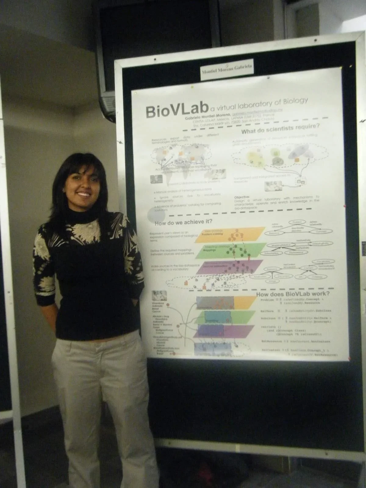 Gabriela Montiel-Moreno (2008). BioVLab: a virtual laboratory of Biology. Poster on the National Encounter of Computer Science Students in conjunction with the 50th Anniversary of Computing Science in Mexico, CINVESTAV, Delegación Gustavo A. Madero, México D.F., México, September 2008 (Internal CD Publication).
